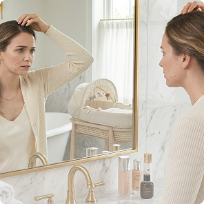 The physical and emotional toll of new motherhood puts your body in survival mode. Hair growth is one of the first things it deprioritises.